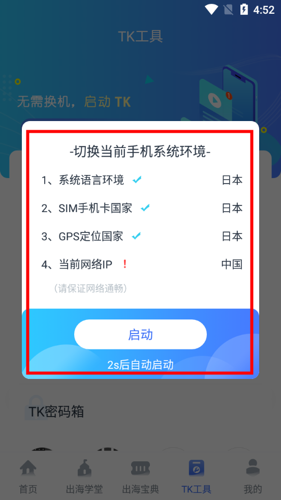 然后TK运营助手就会自动帮你改变手机环境。